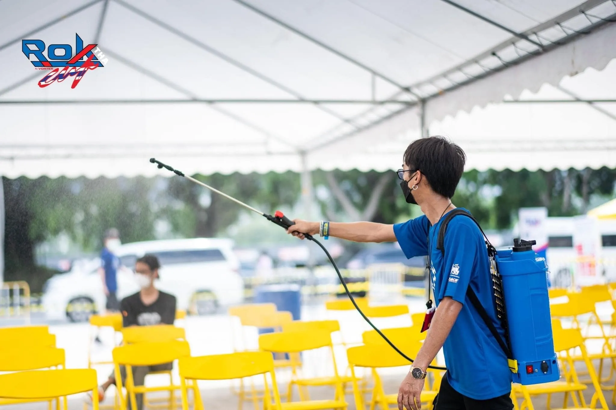 Prozon conducted disinfection spraying using Stabilized Aqueous Ozone that is highly effective in eliminating SARS-COV-2 or the pathogens that cause COVID-19 at the go-kart racing competition Rok Cup Thailand 2021 final round at Bira Kart Circuit, Pattaya.