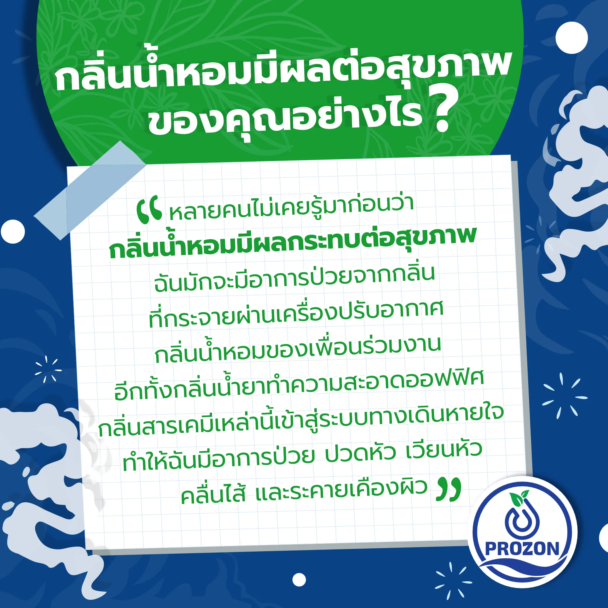 ปัญหาสุขภาพที่หลายคนอาจมองข้าม เมื่อสัมผัสกับผลิตภัณฑ์ที่มีกลิ่นหอม ปัญหาเหล่านั้นรวมถึงโรคหอบหืด ปวดศีรษะ ไมเกรน เวียนศีรษะ หายใจติดขัด ระคายเคืองผิว คลื่นไส้ รวมถึงขั้นมีอาการชัก