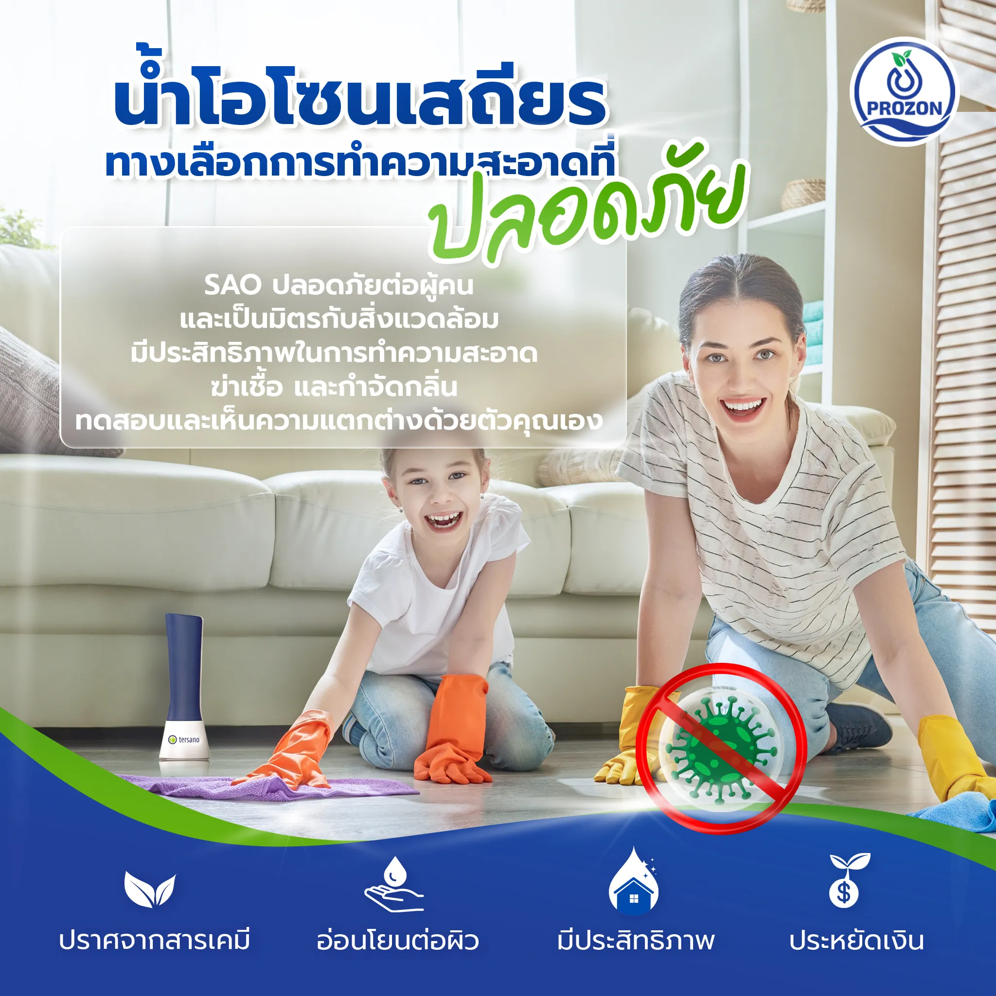 "คุณรู้สึกไม่ปลอดภัยกับการใช้สารเคมีรุนแรงในการทำความสะอาดบ้านหรือที่ทำงานของคุณหรือไม่ ลองเปลี่ยนมาใช้น้ำโอโซนเสถียร(SAO)แทนสารเคมีทำความสะอาดแบบเดิมๆ!