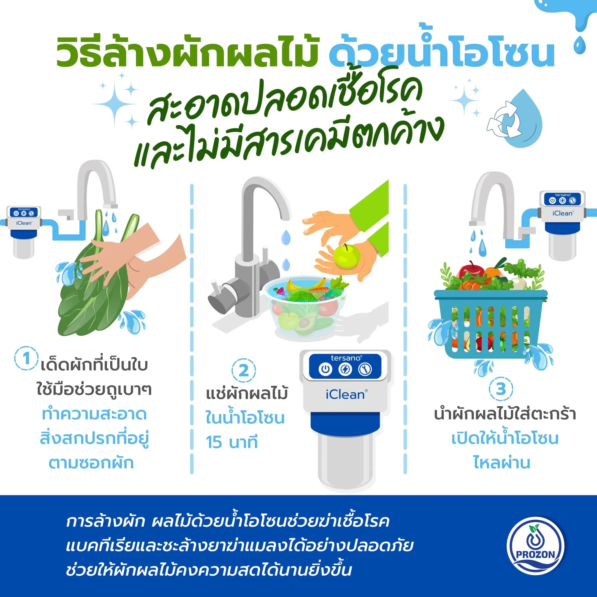 การล้างผัก ผลไม้ให้สะอาดก่อนบริโภคถือเป็นสิ่งสำคัญในการรักษาสุขภาพที่ดีและมั่นใจในความปลอดภัยของอาหาร วิธีทำความสะอาดผักที่มีประสิทธิภาพวิธีหนึ่งคือการใช้น้ำโอโซน
