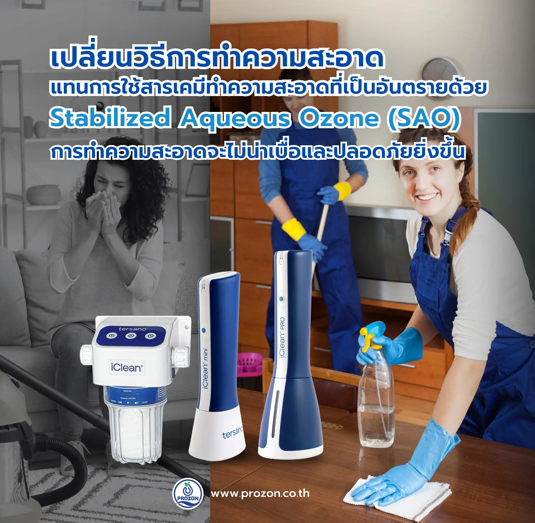 เพื่อหลีกเลี่ยงปัญหาดังกล่าว ลองเปลี่ยนมาใช้ผลิตภัณฑ์ที่ปลอดภัยอย่างการใช้ น้ำโอโซน (SAO) ด้วยเครื่องผลิตน้ำโอโซน iClean FLO3 สามารถผลิตน้ำโอโซนสำหรับทำความสะอาดและฆ่าเชื้อได้ไม่จำกัด ไม่มีสารเคมีและมีความเป็นธรรมชาติ 100% ทางเลือกของการทำควาสะอาดที่ยอดเยี่ยมสามารถช่วยให้การทำความสะอาดบ้านหรือที่ทำงานเป็นเรื่องที่ปลอดภัยและมีประสิทธิภาพ อีกทั้งยังเป็นมิตรต่อสิ่งแวดล้อม
