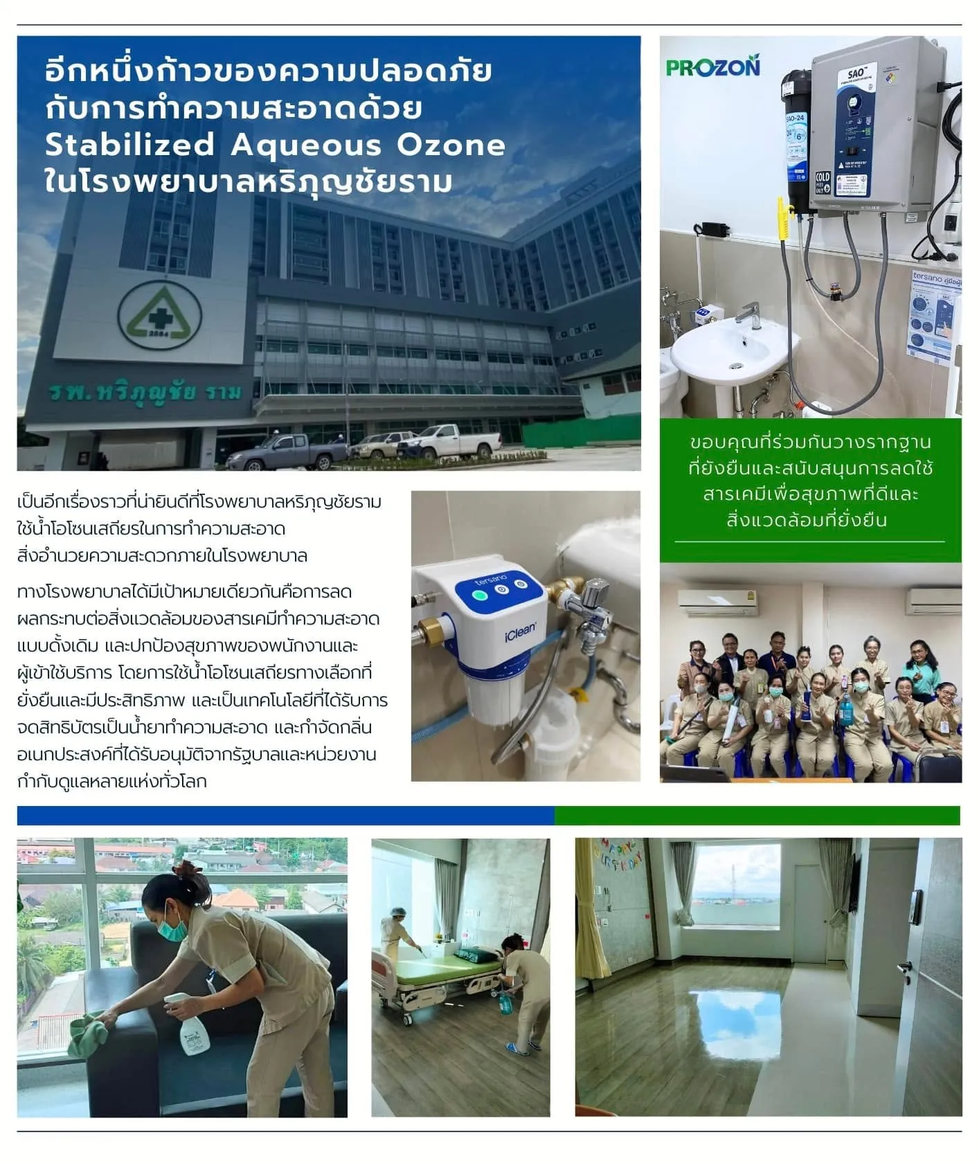 ขอบคุณโรงพยาบาลหริภุญชัย ราม และ PCS Thailand ที่ร่วมกันวางรากฐานที่ยั่งยืนและสนับสนุนการใช้น้ำโอโซนเสถียรและลดการใช้สารเคมี เพื่อความปลอดภัยต่อสุขภาพของพนักงานและผู้ใช้บริการ